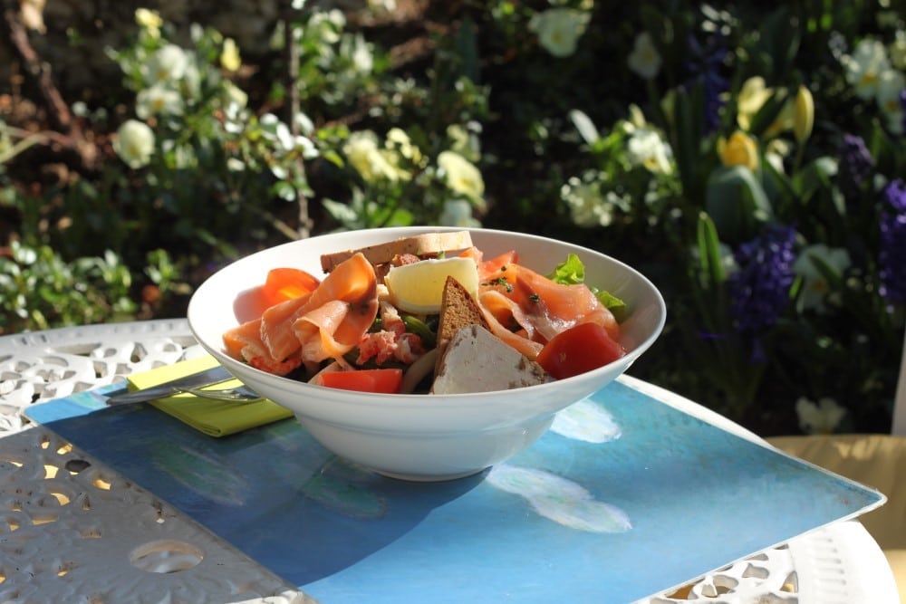 And then there is La Parenthèse, tucked behind an elegant wrought-iron gate just a few minutes’ walk from the gardens. The courtyard, complete with resident chickens and an abundance of flowers, invites you to slow down. The menu is seasonal and rooted in Norman tradition — camembert AOP, tarte fine, fresh salads — at very reasonable prices. It’s the kind of lunch that will make you feel like a local.