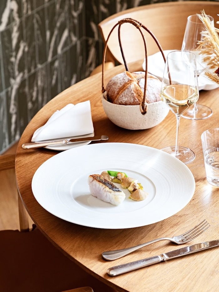 For something more relaxed, Les Nymphéas sits just steps from the entrance to Monet’s house and gardens and is open continuously throughout the day, making it equally good for lunch, an afternoon crêpe, or a post-garden coffee. The menu leans into the terroir Normand in a pretty, flower-filled setting that captures the spirit of the home and garden.