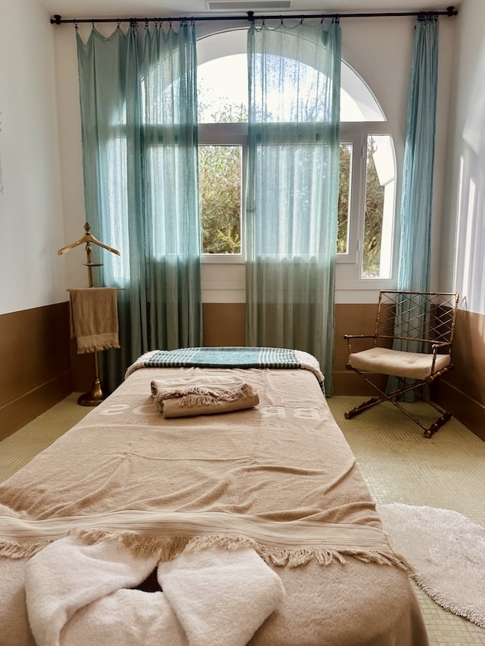 The Brindos spa extends the château’s sense of serenity into a sanctuary of light and water. The space, adorned in soft mosaics and antique mirrors, encompasses relaxing treatment rooms with Equatoria products. Four whirlpool baths surrounded by billowing curtains and an individual sauna room complete the atmosphere of rejuvenation.