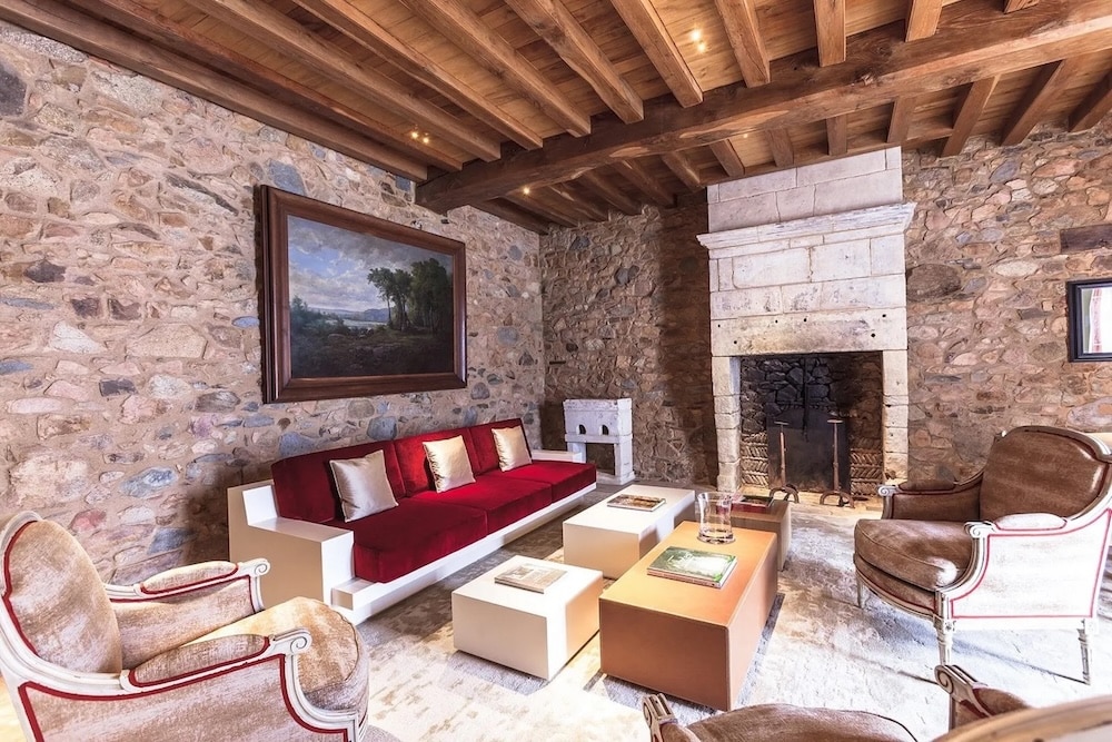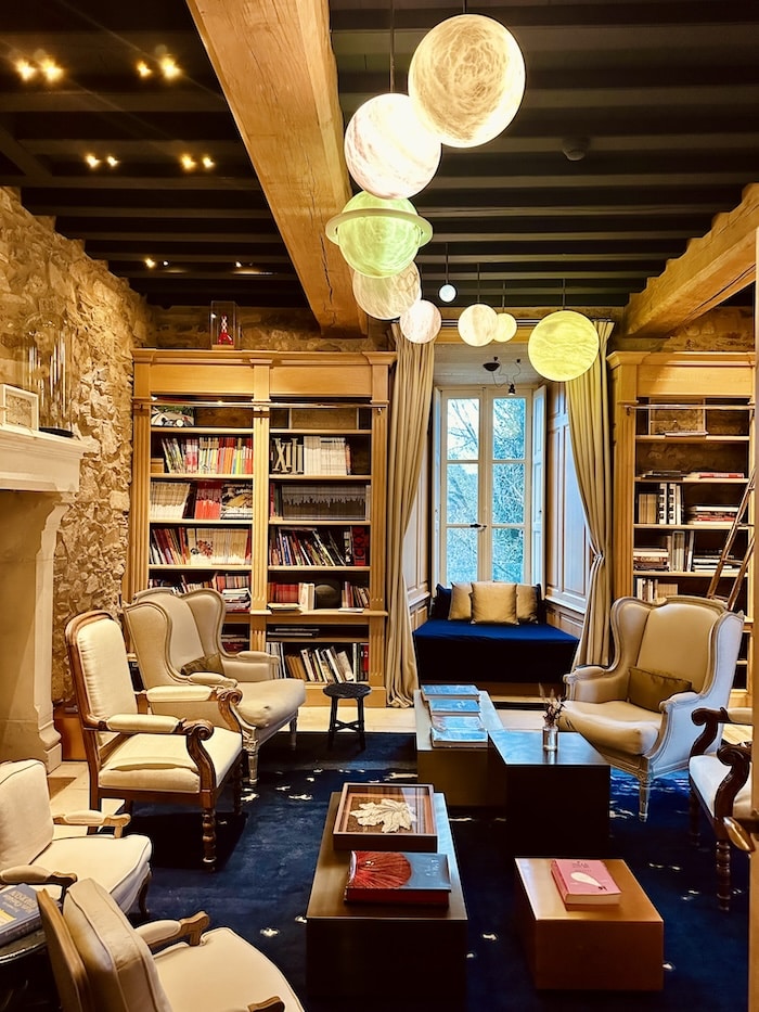 Beyond its suites, the château unfolds like a living cabinet of curiosities. Antique furniture and monumental stone fireplaces mingle with contemporary works of art and scientific objects such as telescopes, globes, and satellite imagery, sparking wonder in every salon.