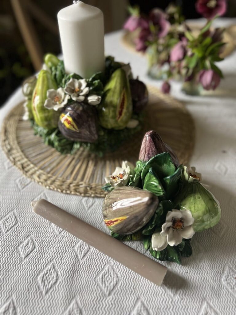 To maintain a French theme, choose your serveware wisely, as it will set the tone for the meal to come. Antique plates and serving dishes not only act as functional vessels for your culinary creations but are also beautiful centerpieces that showcase the quintessential elegance of French design. Typically coming in cream, with blue, red or green detailing, they can be seamlessly integrated to most holiday tablescapes, adding layer of regality to your dinner party.