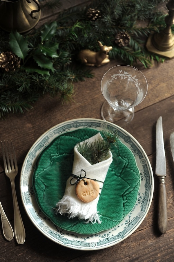 For a more personal, French-farm house touch, try woven placemats paired with napkins secured with twine and a sprig of mistletoe or a small pinecone. For a touch of fun (and easy cleaning) at New Year’s Eve parties, we love a paper napkin with a festive finish.