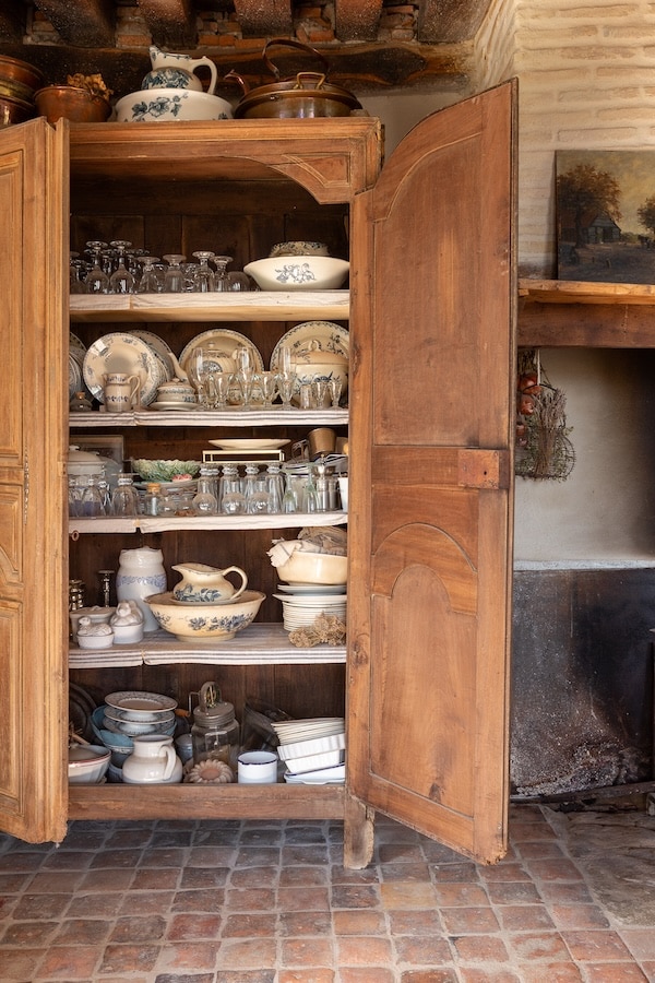 The French have an instinctive eye for the small things: a bundle of dried herbs hung by the door, a stack of books on a worn wooden stool, a single branch in a tall ceramic vase. These are not decorative gestures so much as reflections of daily life.
