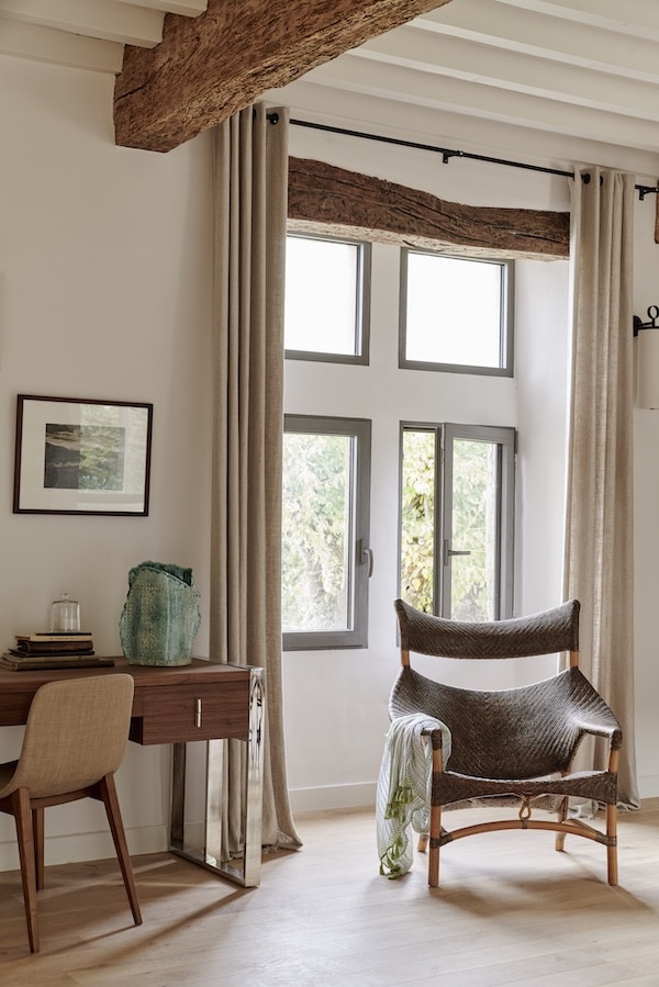 Washed, slightly rumpled, and allowed to pool just a little on the floor, linen curtains lend a room both softness and substance. They filter light without blocking it entirely, filling the room with that warm glow that photographs of Provençal homes capture so well.