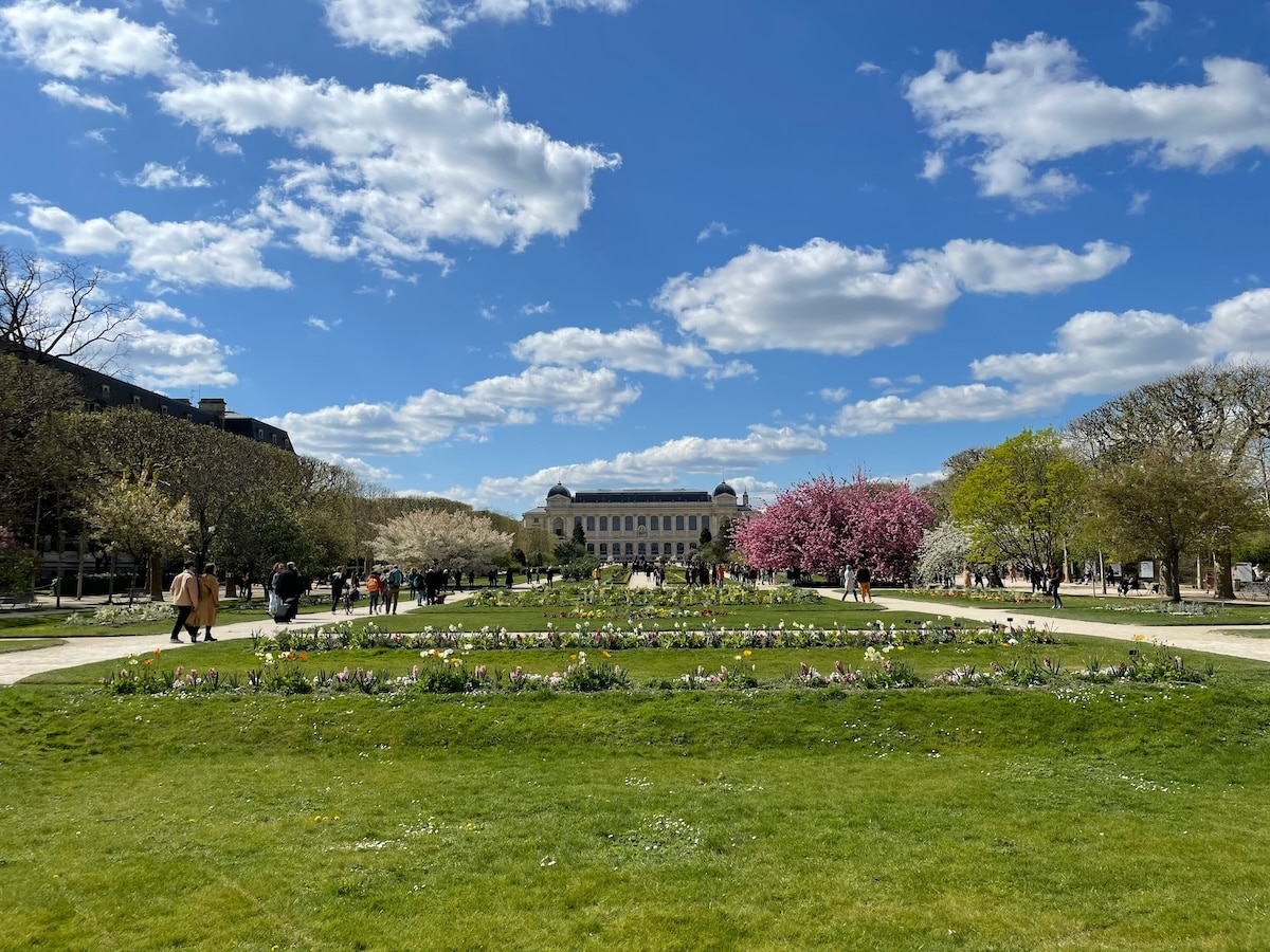 Jardin des Plantes is a quintessential stop in Paris on any day — but most delightful when the sun is shining. When the clouds clear, tulips and poppies peek out from the soil. Statues are positioned among the roses, and onlookers take a moment of reprieve from the busy city beyond.