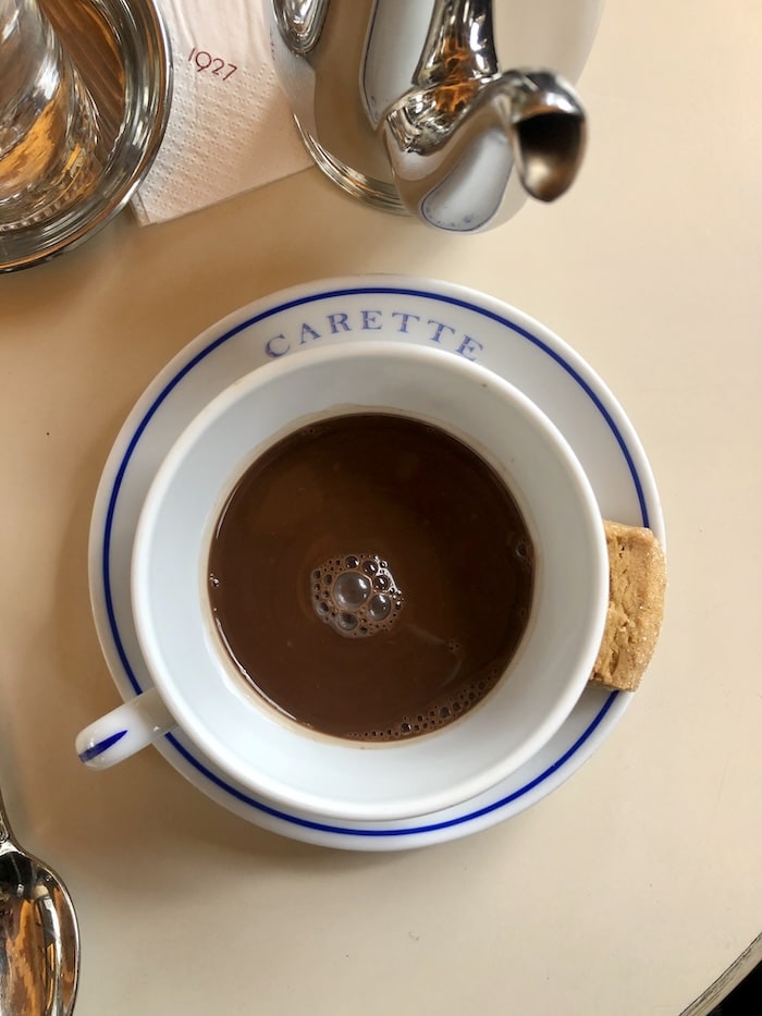 The first time I took a sip of Carette’s hot chocolate, I felt like I was drinking from the river in Willy Wonka & the Chocolate Factory. This smooth and velvety cocoa is the perfect accompaniment to a chilly fall day, best enjoyed out on the terrace facing the crisp autumn trees across the street in Place des Vosges.