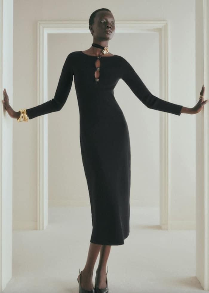 Just because it’s winter doesn’t mean you can’t wear an LBD! Sequins, velvet, cashmere, and ribbed wool are all beautiful options that are completely appropriate for the holidays.