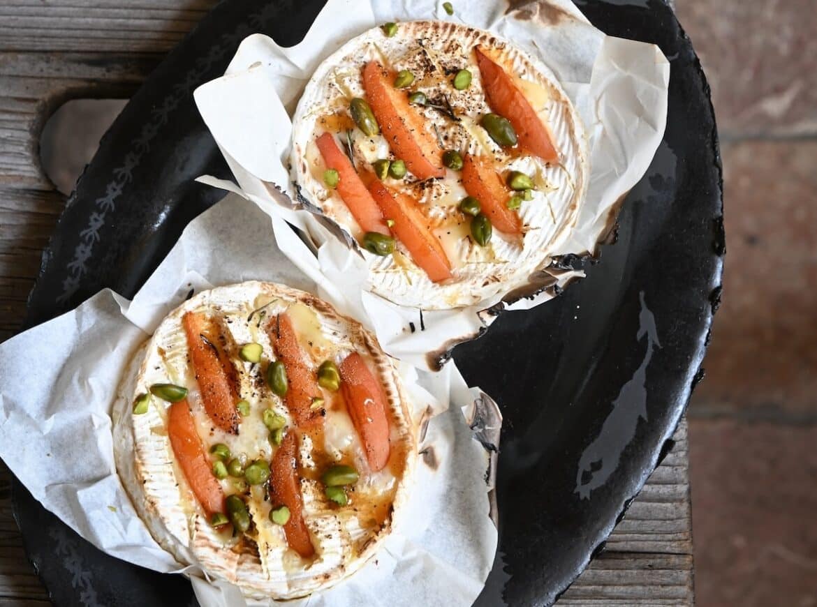 This particular recipe is ideal for a summer apéritif on the terrace or as an appetizer to a long summer meal in the garden. The creaminess of the baked cheese combined with the sweetness of the roasted apricots and the crunchiness of the pistachios makes for a explosive combination of flavors and textures.